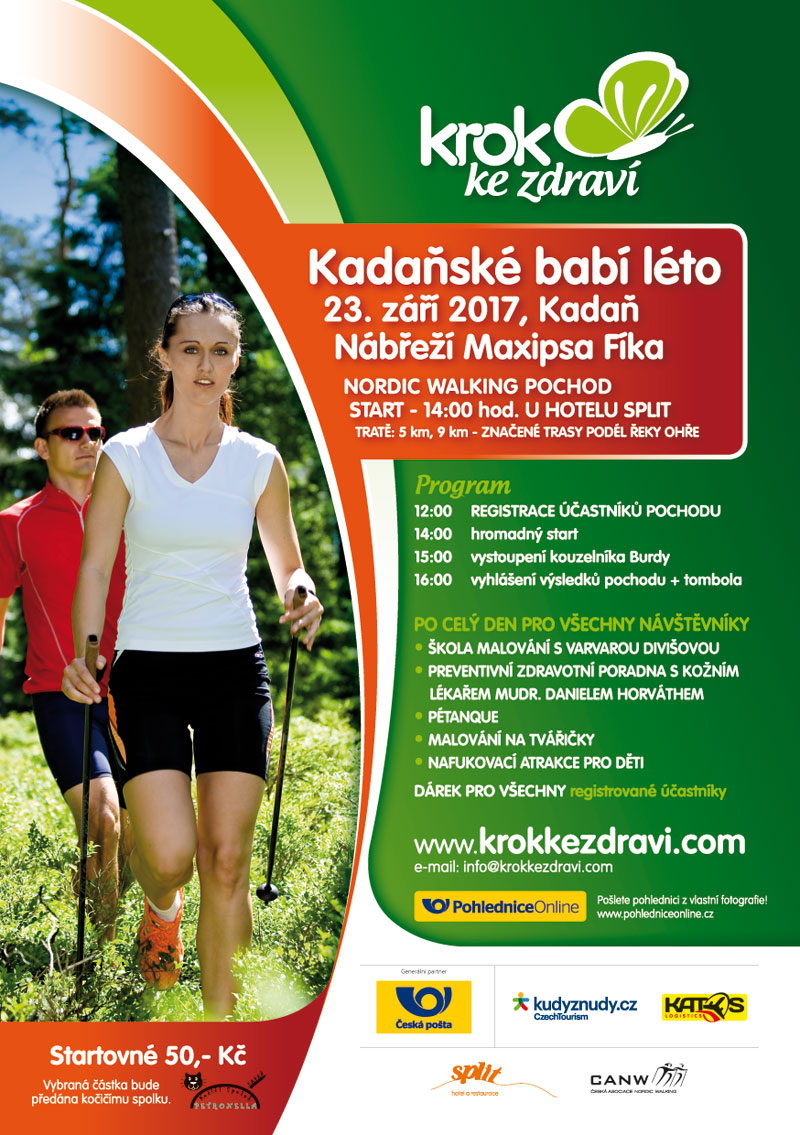 A jak jinak, než na malebném Nábřeží Maxipsa Fíka u řeky Ohře. Start a cíl v podobě velké nafukovací brány bude přesně před restaurací Split. Zde se také bude odehrávat další doprovodný program a přímo odtud bude náš oblíbený moderátor Lukáš Budai všechny návštěvníky o aktivitách Kroku ke zdraví informovat. Na programu bude stejně jako každý rok pochod po krásném okolí města Kadaň (s hůlkami nordic walking a klidně i bez) a spoustu doprovodných aktivit pro děti i pro dospělé před Hotelem Split. A pozor! v rámci akcí Kroku ke zdraví zdaleka nejde jen o výkony, ale o to správné rozhodnutí zúčastnit se.