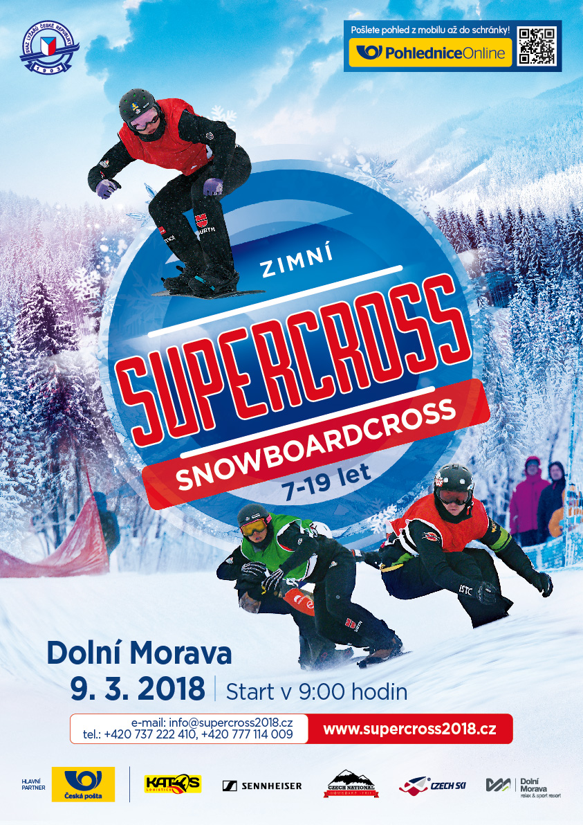 Supercross 2018, seriál soutěží pro děti a mládež, podporovaný Českou poštou a jejich velmi zajímavých produktem Pohlednice Online, bude již tento pátek, 9.3. na Dolní Moravě v režii mladých snowboardistů. Na program se konečně dostal posunutý závod z 3.února, Snowboardcross.